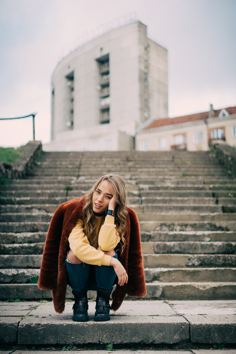 That sunny October afternoon I came to Bea to drink a cup of coffee and we decided to do a small shoot around the place she lives. Vilnius really have some cool places to shoot. And Bea is stunning!